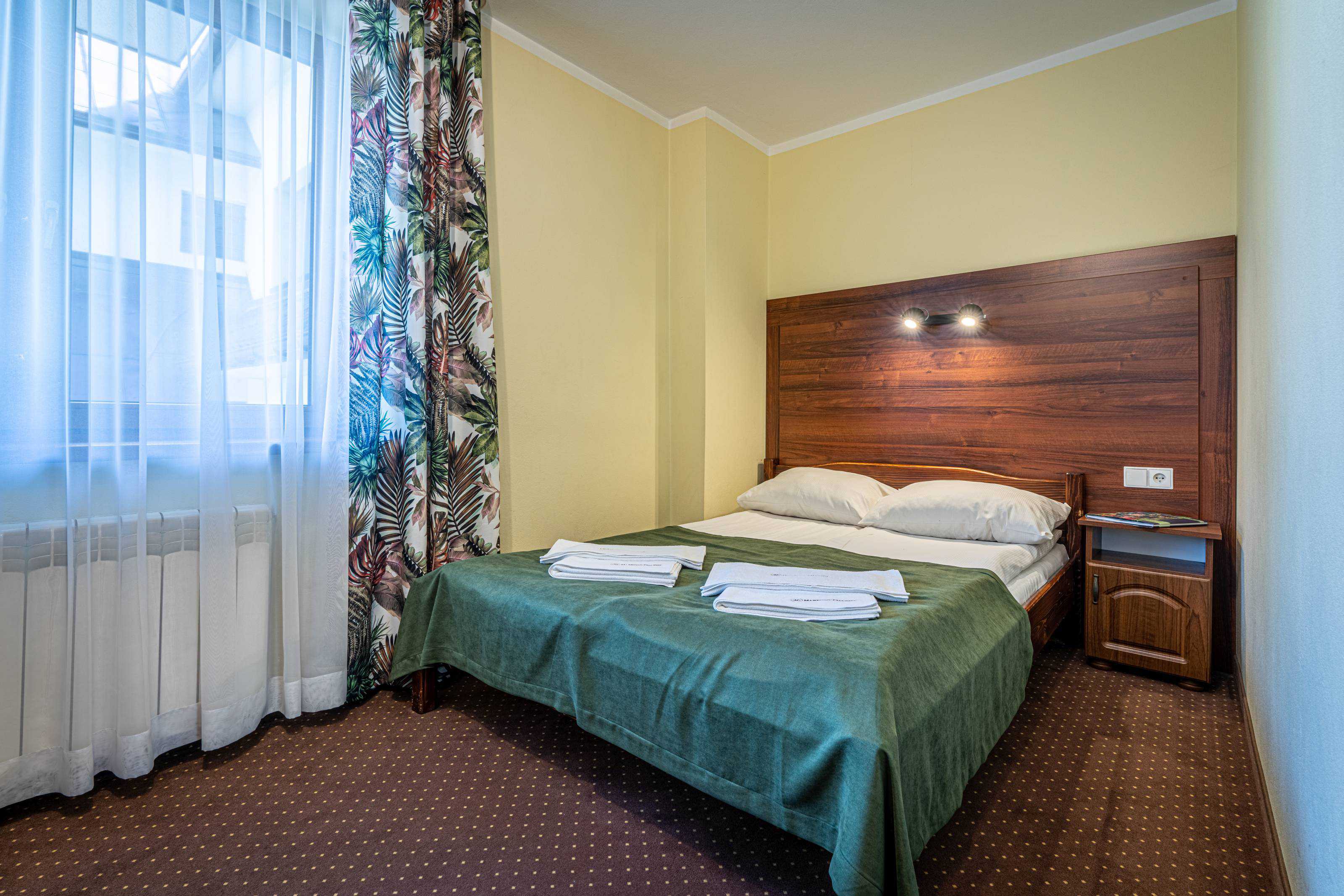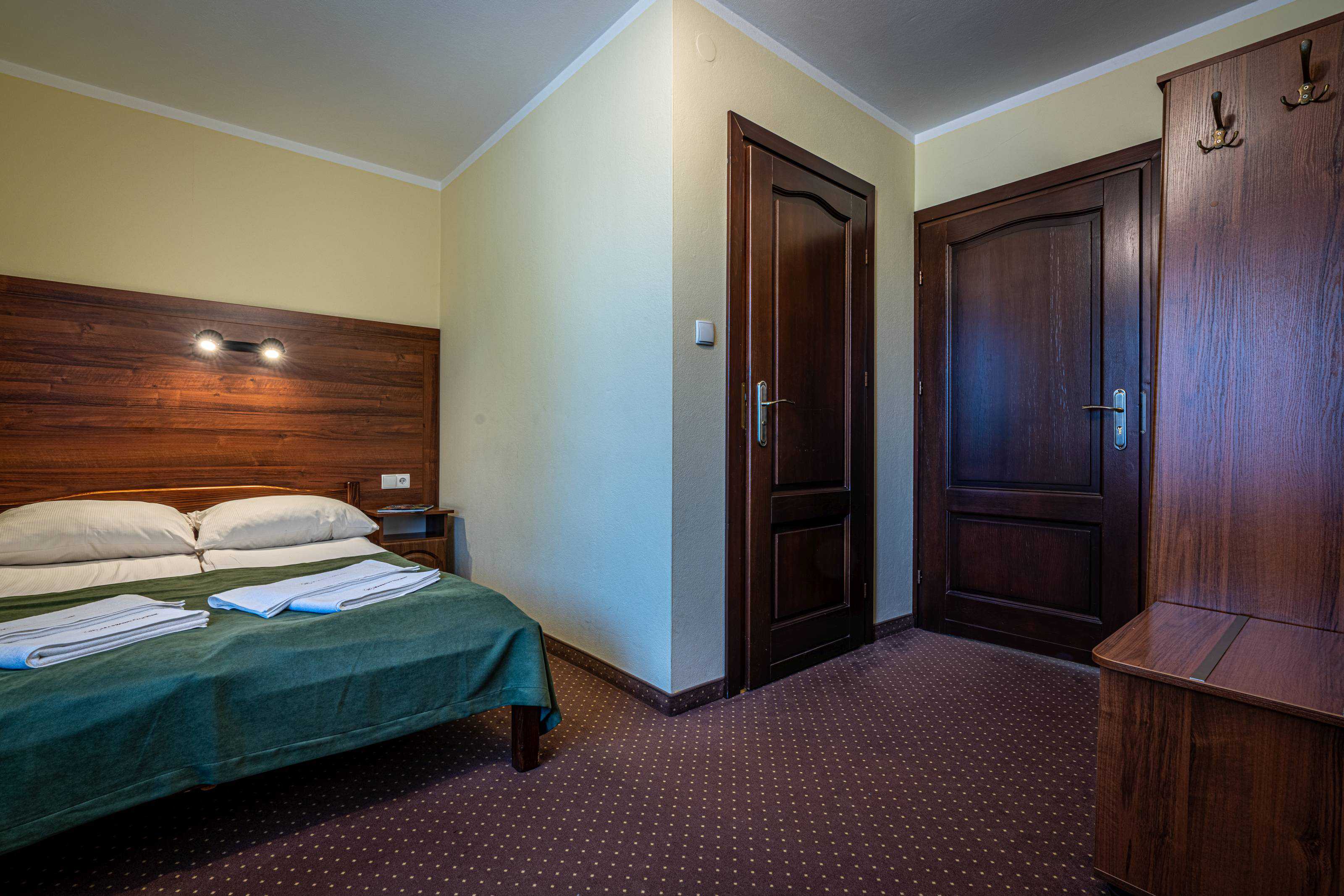 Oferujemy kameralną sypialnie z wygodnym pojedyńczym łóżkiem małżeńskim, które zapewni Państwu spokojny sen.