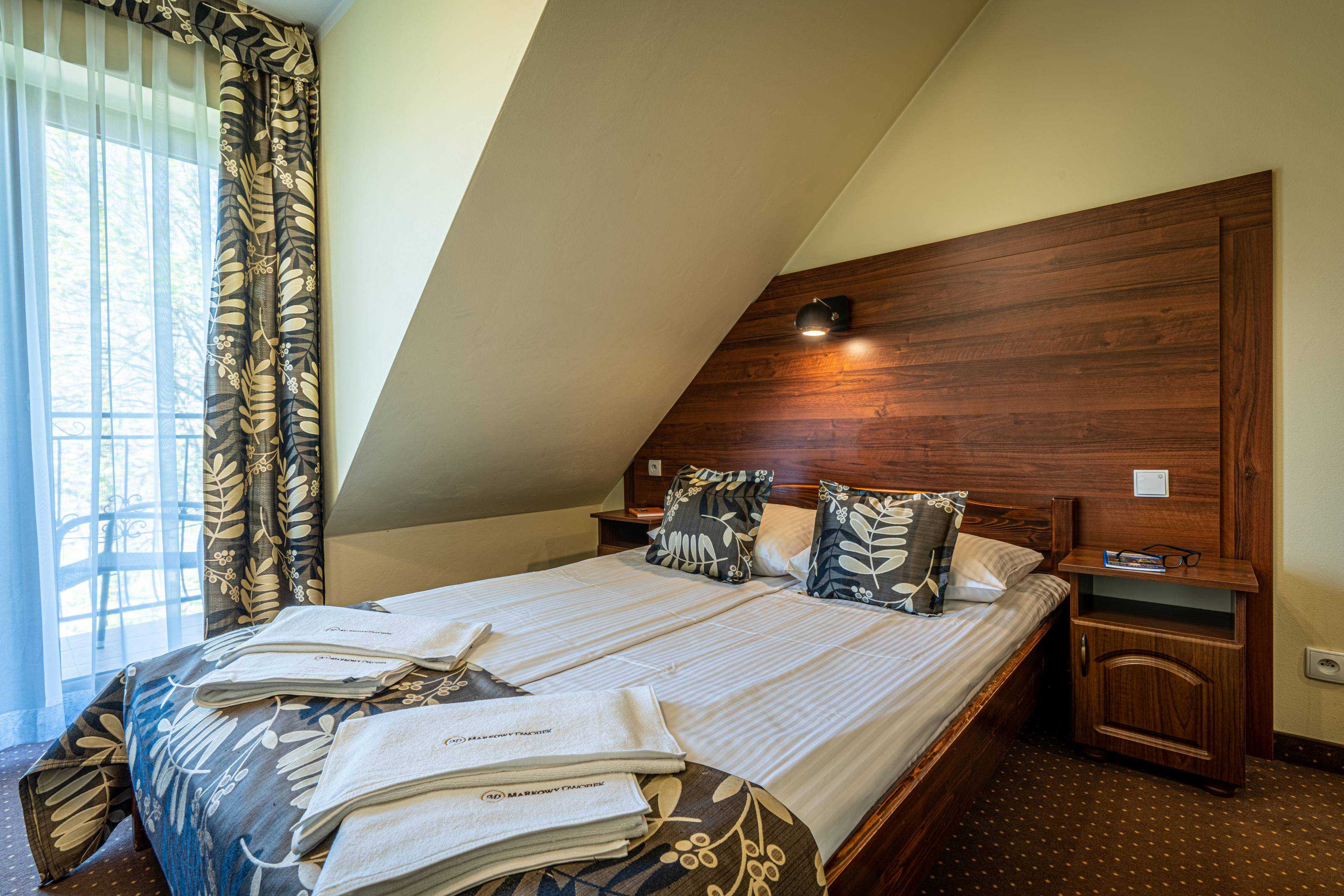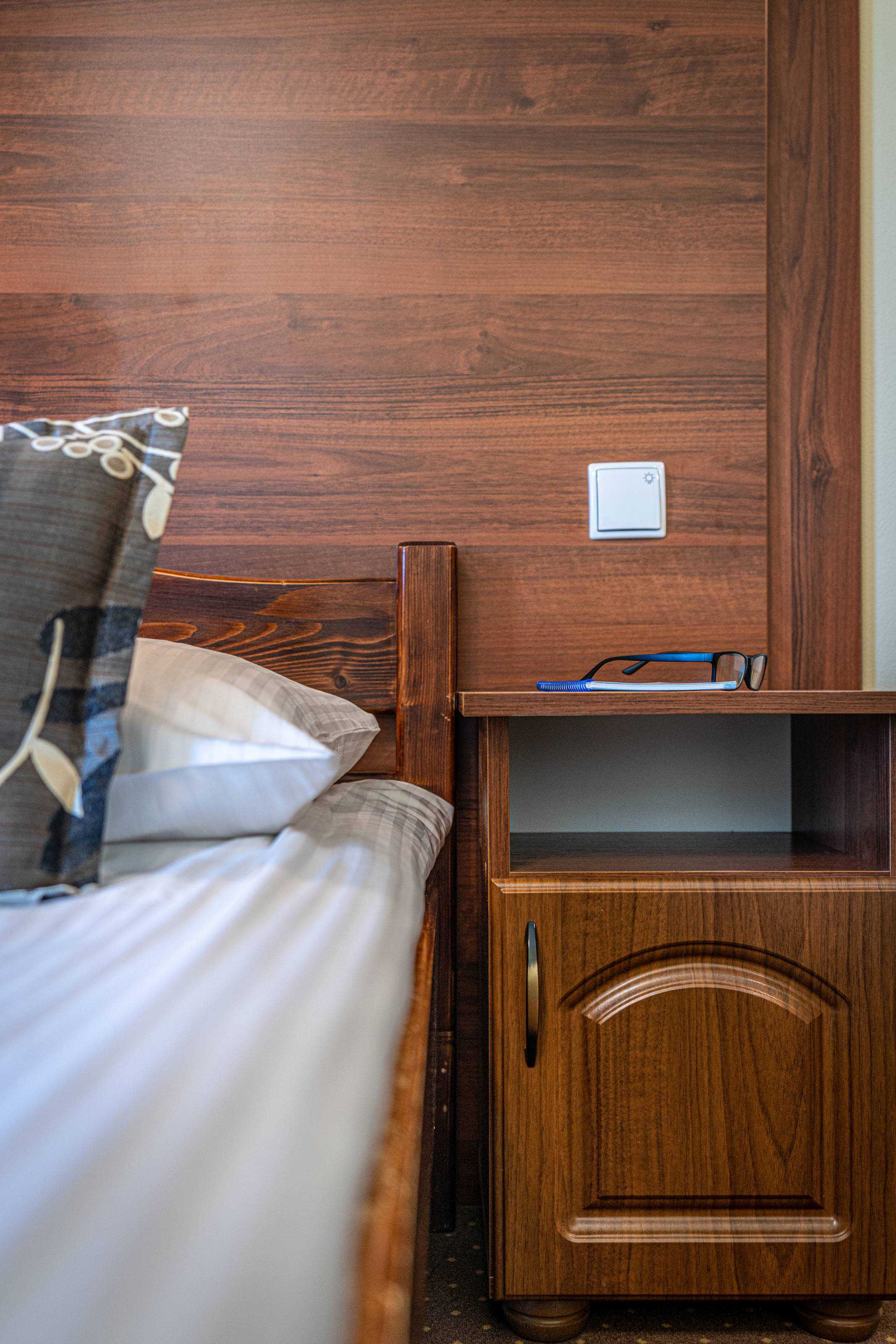 Oferujemy kameralną sypialnie z wygodnym pojedyńczym łóżkiem małżeńskim, które zapewni Państwu spokojny sen.